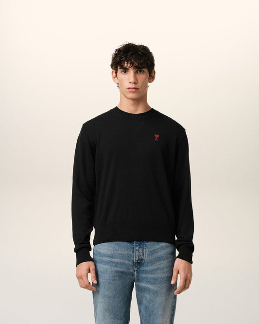 BLACK WOOL AMI CREW NECK SWEATER